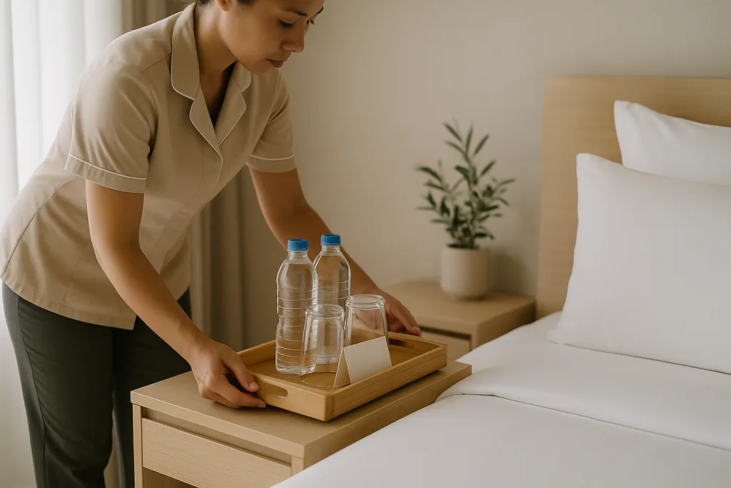 Expert Takeaway: Use a photo checklist with labeled spots to help room staff place, inspect, and replace every wooden amenity quickly and consistently. This visual guide reduces errors and keeps branding strong.