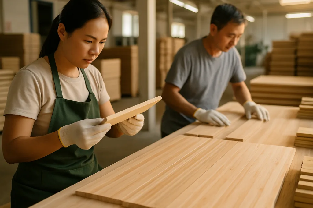 Manufacturers implement precise controls at each stage. Bamboo slats are sorted for grain uniformity and kiln-dried to exact moisture levels. Lamination with E1-class resins keeps formaldehyde emissions low. CNC machining creates smooth forms, while sanding in stages (180, 240, then 320 grit) ensures no scratching edges remain. Finished items are checked for flatness and adhesion before packaging.